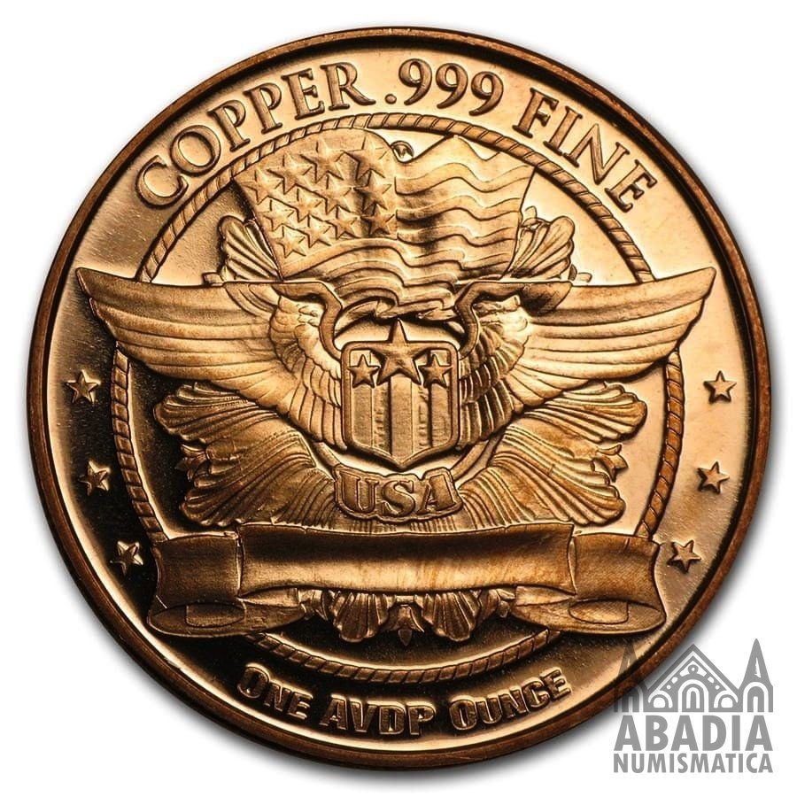 Moneda “Libertad Sentada” de 1 Onza AVDP en cobre puro 999, encapsulada y sin circular. Pieza inspirada en la numismática clásica estadounidense.