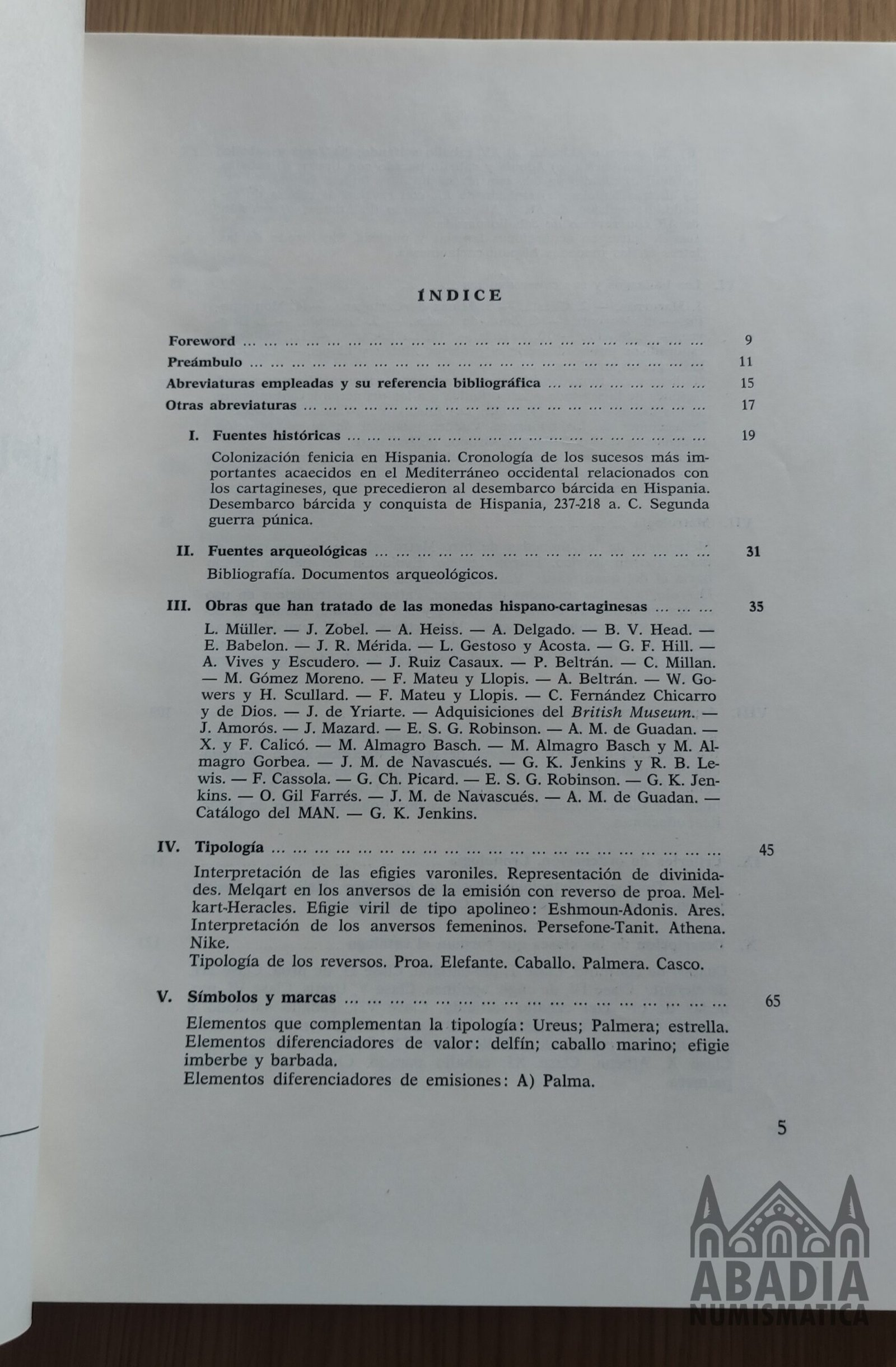 Clásico de Leandro Villaronga (1973) sobre las monedas hispano-cartaginesas, uno de los estudios más citados en arqueología monetaria.